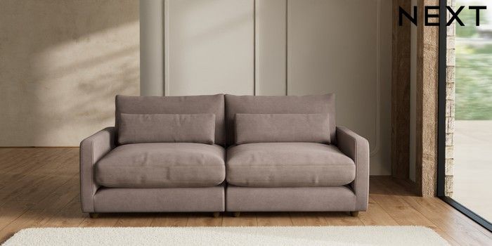 7.2.6 Buy N Premium Farndon Grand Relaxed Sit 4 Seater Sofa Luxe Chenille Mink Brown Wooden Glide - Mid from the Next UK online shop Click here to use our accessible website