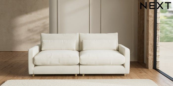 7.2.6 Buy N Premium Farndon Grand Relaxed Sit 4 Seater Sofa Luxe Chenille Oyster Wooden Glide - Light from the Next UK online shop Click here to use our accessible website