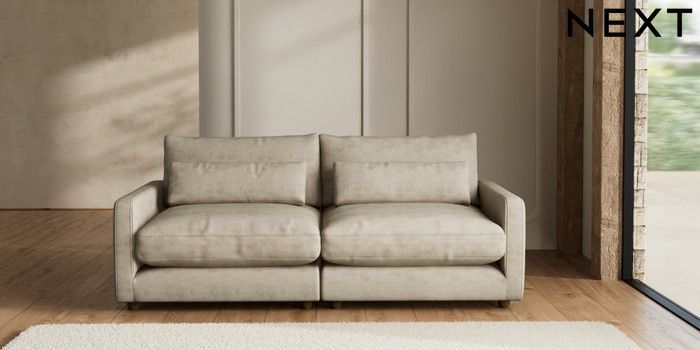 7.2.6 Buy N Premium Farndon Grand Relaxed Sit 4 Seater Sofa Monza Faux Leather Easy Clean Mink Brown Wooden Glide - Mid from the Next UK online shop Click here to use our accessible website