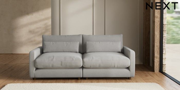 7.2.6 Buy N Premium Farndon Grand Relaxed Sit 4 Seater Sofa Natural Mix Light Grey Wooden Glide - Mid from the Next UK online shop Click here to use our accessible website