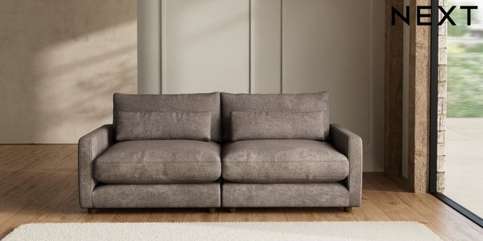 7.2.6 Buy N Premium Farndon Grand Relaxed Sit 4 Seater Sofa Plush Chenille Mink Brown Wooden Glide - Mid from the Next UK online shop Click here to use our accessible website