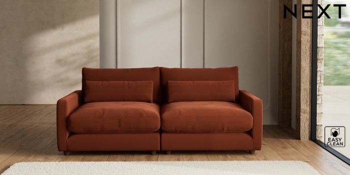 7.2.6 Buy N Premium Farndon Grand Relaxed Sit 4 Seater Sofa Plush Velvet Easy Clean Ginger Orange Wooden Glide - Mid from the Next UK online shop Click here to use our accessible website
