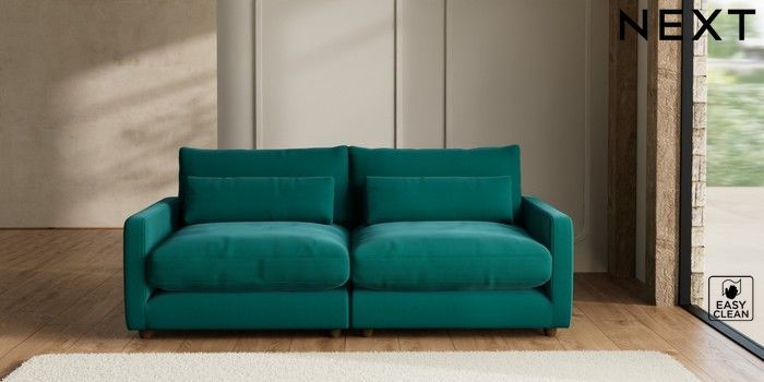 7.2.6 Buy N Premium Farndon Grand Relaxed Sit 4 Seater Sofa Plush Velvet Easy Clean Juniper Green Wooden Glide - Mid from the Next UK online shop Click here to use our accessible website