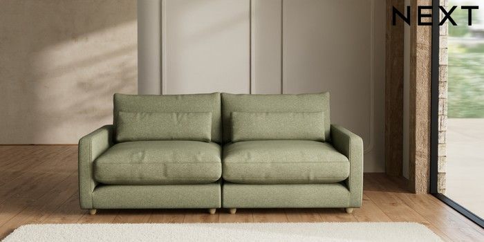 7.2.6 Buy N Premium Farndon Grand Relaxed Sit 4 Seater Sofa Tweedy Chenille Mid Moss Green Wooden Glide - Light from the Next UK online shop Click here to use our accessible website