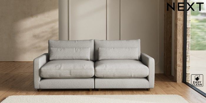 7.2.6 Buy N Premium Farndon Grand Relaxed Sit 4 Seater Sofa Woven Chenille Easy Clean Light Grey Wooden Glide - Mid from the Next UK online shop Click here to use our accessible website