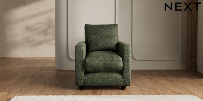 7.2.6 Buy N Premium Farndon Grand Relaxed Sit Armchair Boucle Chenille Dark Moss Green Wooden Glide - Dark from the Next UK online shop Click here to use our accessible website