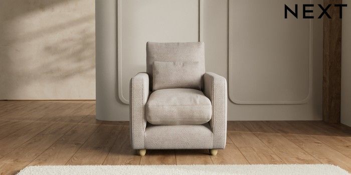 7.2.6 Buy N Premium Farndon Grand Relaxed Sit Armchair Boucle Chenille Light Natural Wooden Glide - Light from the Next UK online shop Click here to use our accessible website