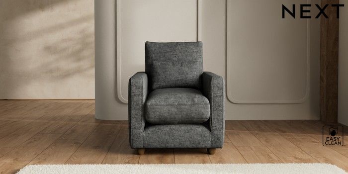 7.2.6 Buy N Premium Farndon Grand Relaxed Sit Armchair Boucle Weave Easy Clean Charcoal Grey Wooden Glide - Mid from the Next UK online shop Click here to use our accessible website