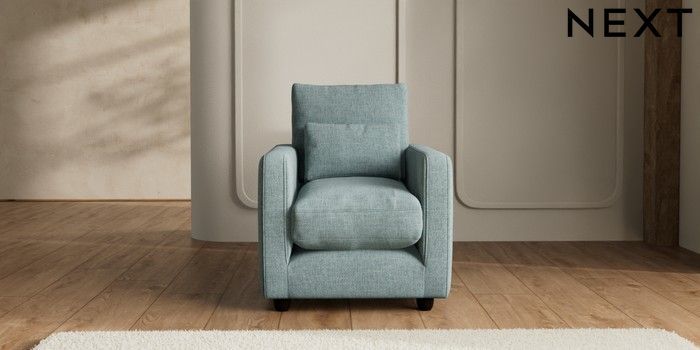 7.2.6 Buy N Premium Farndon Grand Relaxed Sit Armchair Chunky Chenille Light Teal Green Wooden Glide - Dark from the Next UK online shop Click here to use our accessible website