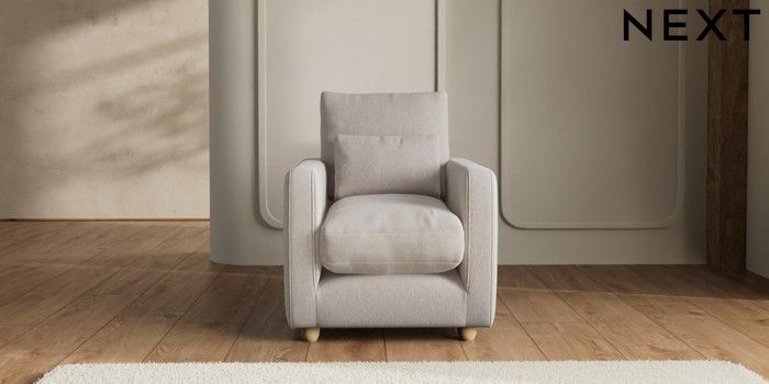 7.2.6 Buy N Premium Farndon Grand Relaxed Sit Armchair Cotswold Chenille Oyster Wooden Glide - Light from the Next UK online shop Click here to use our accessible website