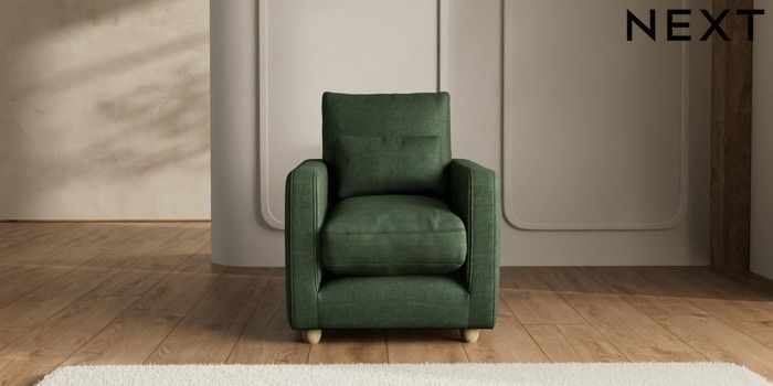7.2.6 Buy N Premium Farndon Grand Relaxed Sit Armchair Luxe Chenille Dark Green Wooden Glide - Light from the Next UK online shop Click here to use our accessible website