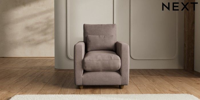 7.2.6 Buy N Premium Farndon Grand Relaxed Sit Armchair Luxe Chenille Mink Brown Wooden Glide - Mid from the Next UK online shop Click here to use our accessible website