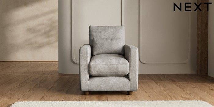 7.2.6 Buy N Premium Farndon Grand Relaxed Sit Armchair Plush Chenille Light Grey Wooden Glide - Mid from the Next UK online shop Click here to use our accessible website
