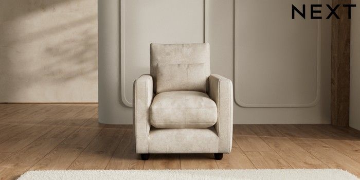 7.2.6 Buy N Premium Farndon Grand Relaxed Sit Armchair Plush Chenille Light Natural Wooden Glide - Dark from the Next UK online shop Click here to use our accessible website