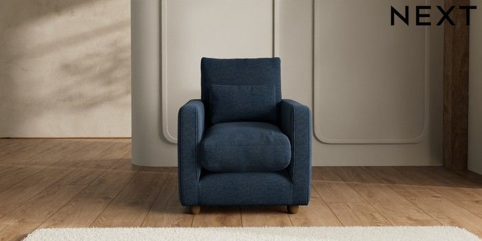 7.2.6 Buy N Premium Farndon Grand Relaxed Sit Armchair Ripple Chenille Dark Blue Wooden Glide - Mid from the Next UK online shop Click here to use our accessible website