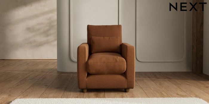 7.2.6 Buy N Premium Farndon Grand Relaxed Sit Armchair Ripple Chenille Mid Rust Brown Wooden Glide - Mid from the Next UK online shop Click here to use our accessible website