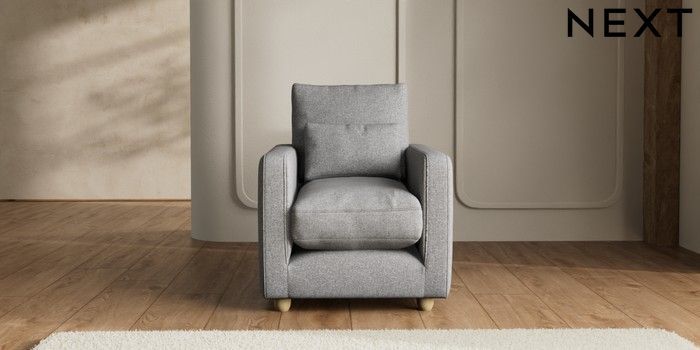 7.2.6 Buy N Premium Farndon Grand Relaxed Sit Armchair Studio Chenille Mid Grey Wooden Glide - Light from the Next UK online shop Click here to use our accessible website
