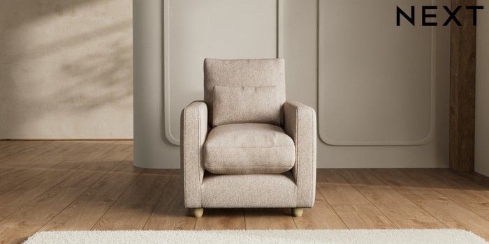 7.2.6 Buy N Premium Farndon Grand Relaxed Sit Armchair Tweedy Chenille Mid Natural Wooden Glide - Light from the Next UK online shop Click here to use our accessible website