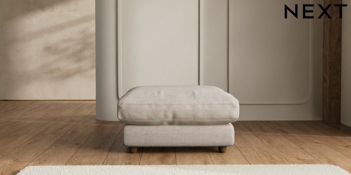 7.2.6 Buy N Premium Farndon Grand Relaxed Sit Extra Large Footstool Boucle Chenille Light Natural Wooden Glide - Mid from the Next UK online shop Click here to use our accessible website