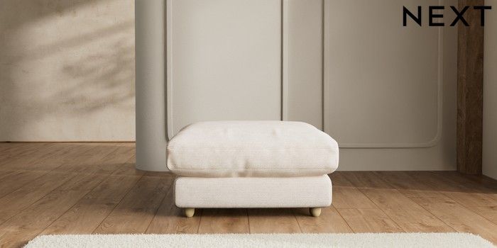 7.2.6 Buy N Premium Farndon Grand Relaxed Sit Extra Large Footstool Boucle Chenille Oyster Wooden Glide - Light from the Next UK online shop Click here to use our accessible website