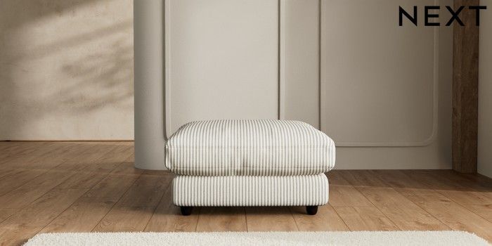 7.2.6 Buy N Premium Farndon Grand Relaxed Sit Extra Large Footstool Chenille Stripe Moss Green Wooden Glide - Dark from the Next UK online shop Click here to use our accessible website