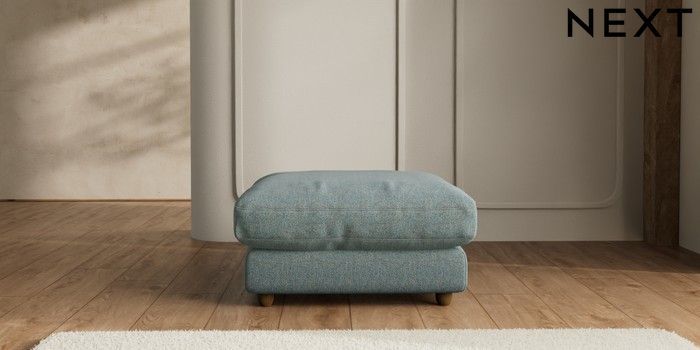 7.2.6 Buy N Premium Farndon Grand Relaxed Sit Extra Large Footstool Chunky Marl Mid Blue Wooden Glide - Mid from the Next UK online shop Click here to use our accessible website