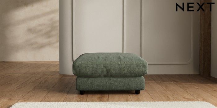 7.2.6 Buy N Premium Farndon Grand Relaxed Sit Extra Large Footstool Chunky Texture Mid Forest Green Wooden Glide - Dark from the Next UK online shop Click here to use our accessible website
