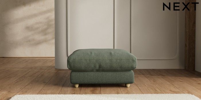 7.2.6 Buy N Premium Farndon Grand Relaxed Sit Extra Large Footstool Chunky Texture Mid Forest Green Wooden Glide - Light from the Next UK online shop Click here to use our accessible website