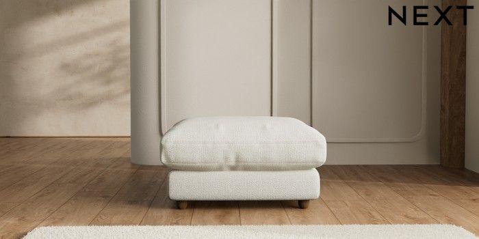 7.2.6 Buy N Premium Farndon Grand Relaxed Sit Extra Large Footstool Chunky Texture Oyster Wooden Glide - Mid from the Next UK online shop Click here to use our accessible website