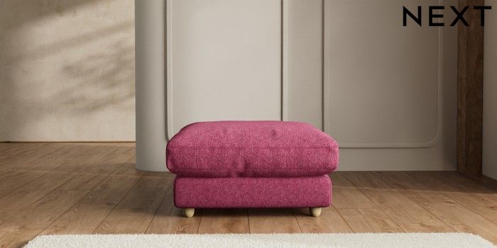 7.2.6 Buy N Premium Farndon Grand Relaxed Sit Extra Large Footstool Cotswold Chenille Dark Raspberry Pink Wooden Glide - Light from the Next UK online shop Click here to use our accessible website