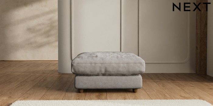 7.2.6 Buy N Premium Farndon Grand Relaxed Sit Extra Large Footstool Distressed Velour French Grey Wooden Glide - Mid from the Next UK online shop Click here to use our accessible website