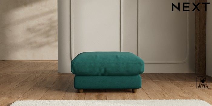 7.2.6 Buy N Premium Farndon Grand Relaxed Sit Extra Large Footstool Fine Chenille Easy Clean Dark Juniper Green Wooden Glide - Mid from the Next UK online shop Click here to use our accessible website
