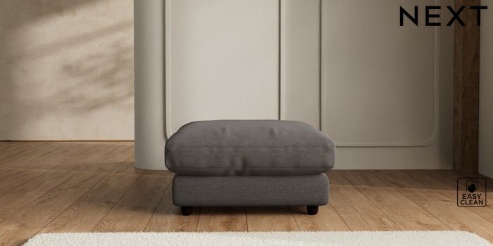 7.2.6 Buy N Premium Farndon Grand Relaxed Sit Extra Large Footstool Fine Chenille Easy Clean Dark Smoke Grey Wooden Glide - Dark from the Next UK online shop Click here to use our accessible website