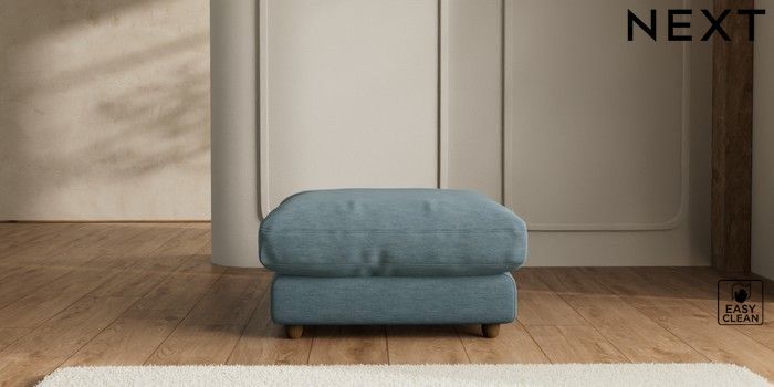 7.2.6 Buy N Premium Farndon Grand Relaxed Sit Extra Large Footstool Fine Chenille Easy Clean Mid Blue Wooden Glide - Mid from the Next UK online shop Click here to use our accessible website