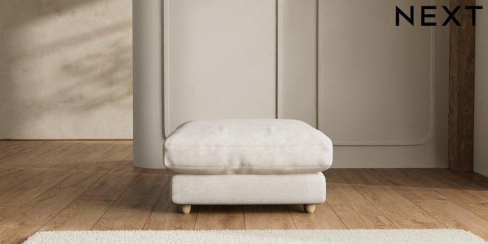 7.2.6 Buy N Premium Farndon Grand Relaxed Sit Extra Large Footstool Plush Chenille Oyster Wooden Glide - Light from the Next UK online shop Click here to use our accessible website