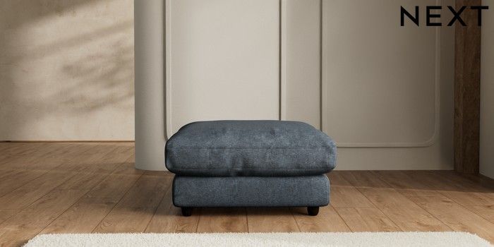 7.2.6 Buy N Premium Farndon Grand Relaxed Sit Extra Large Footstool Plush Chenille Slate Blue Wooden Glide - Dark from the Next UK online shop Click here to use our accessible website