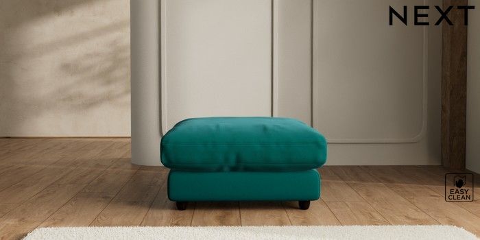7.2.6 Buy N Premium Farndon Grand Relaxed Sit Extra Large Footstool Plush Velvet Easy Clean Juniper Green Wooden Glide - Dark from the Next UK online shop Click here to use our accessible website