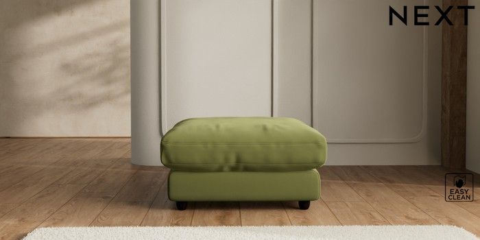 7.2.6 Buy N Premium Farndon Grand Relaxed Sit Extra Large Footstool Plush Velvet Easy Clean Mid Olive Green Wooden Glide - Dark from the Next UK online shop Click here to use our accessible website