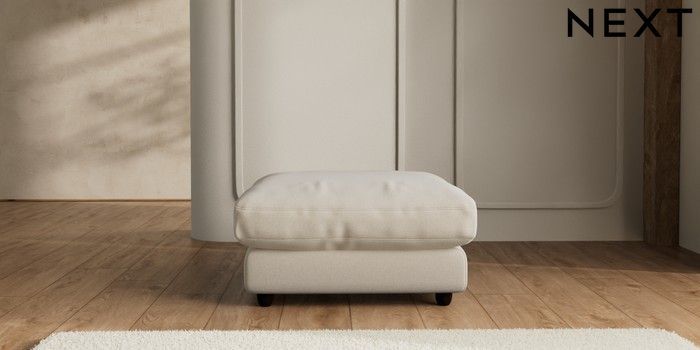 7.2.6 Buy N Premium Farndon Grand Relaxed Sit Extra Large Footstool Studio Chenille Oyster Wooden Glide - Dark from the Next UK online shop Click here to use our accessible website