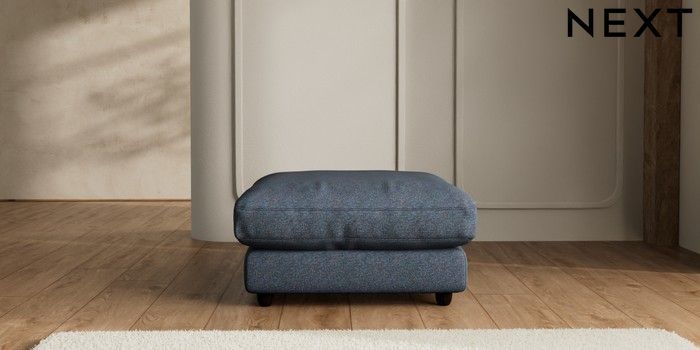 7.2.6 Buy N Premium Farndon Grand Relaxed Sit Extra Large Footstool Tweedy Chenille Navy Blue Wooden Glide - Dark from the Next UK online shop Click here to use our accessible website