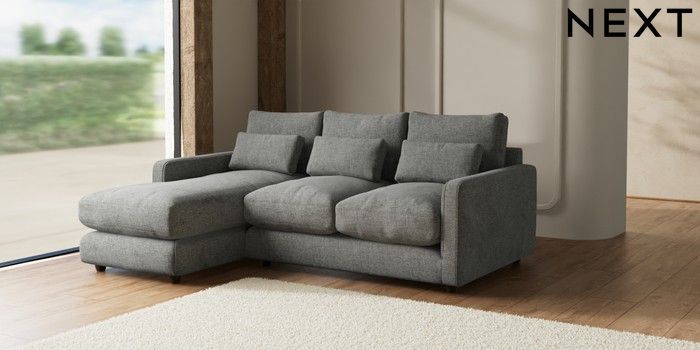 7.2.6 Buy N Premium Farndon Grand Relaxed Sit Medium Sofa Chaise - Left Hand Chunky Chenille Dark Grey Wooden Glide - Mid from the Next UK online shop Click here to use our accessible website
