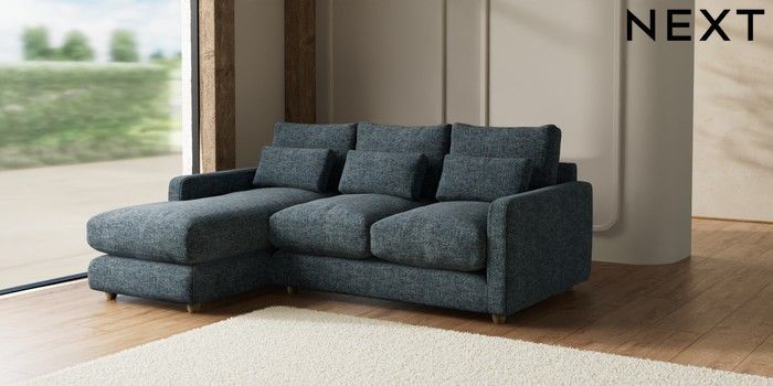 7.2.6 Buy N Premium Farndon Grand Relaxed Sit Medium Sofa Chaise - Left Hand Chunky Chenille Dark Navy Blue Wooden Glide - Light from the Next UK online shop Click here to use our accessible website