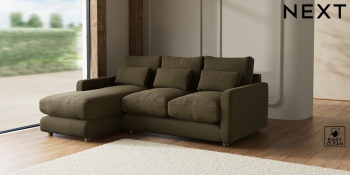 7.2.6 Buy N Premium Farndon Grand Relaxed Sit Medium Sofa Chaise - Left Hand Fine Chenille Easy Clean Dark Moss Green Wooden Glide - Light from the Next UK online shop Click here to use our accessible website