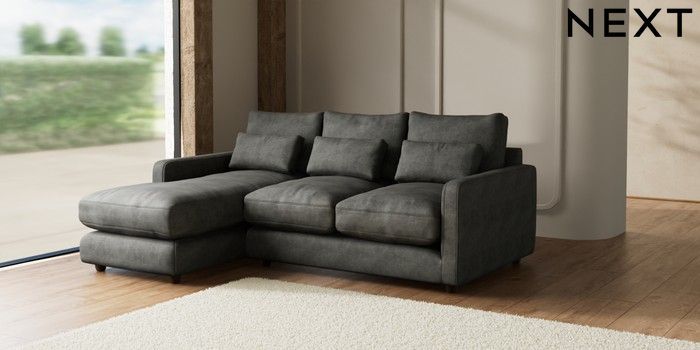 7.2.6 Buy N Premium Farndon Grand Relaxed Sit Medium Sofa Chaise - Left Hand Monza Faux Leather Easy Clean Dark Grey Wooden Glide - Mid from the Next UK online shop Click here to use our accessible website