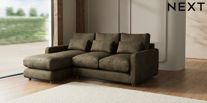 7.2.6 Buy N Premium Farndon Grand Relaxed Sit Medium Sofa Chaise - Left Hand Plush Chenille Moss Green Wooden Glide - Light from the Next UK online shop Click here to use our accessible website