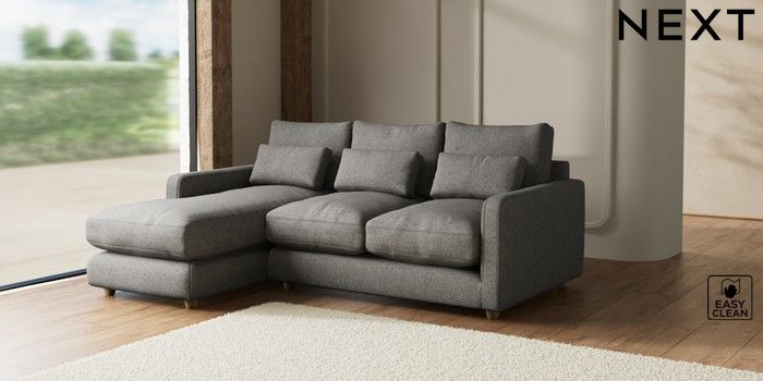 7.2.6 Buy N Premium Farndon Grand Relaxed Sit Medium Sofa Chaise - Left Hand Tweedy Blend Easy Clean Dark Grey Wooden Glide - Light from the Next UK online shop Click here to use our accessible website