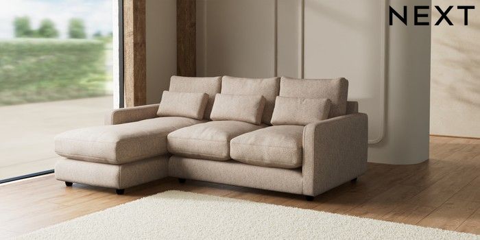 7.2.6 Buy N Premium Farndon Grand Relaxed Sit Medium Sofa Chaise - Left Hand Tweedy Chenille Mid Natural Wooden Glide - Dark from the Next UK online shop Click here to use our accessible website