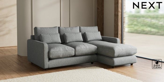 7.2.6 Buy N Premium Farndon Grand Relaxed Sit Medium Sofa Chaise - Right Hand Chunky Boucle Easy Clean Mid Grey Wooden Glide - Mid from the Next UK online shop Click here to use our accessible website