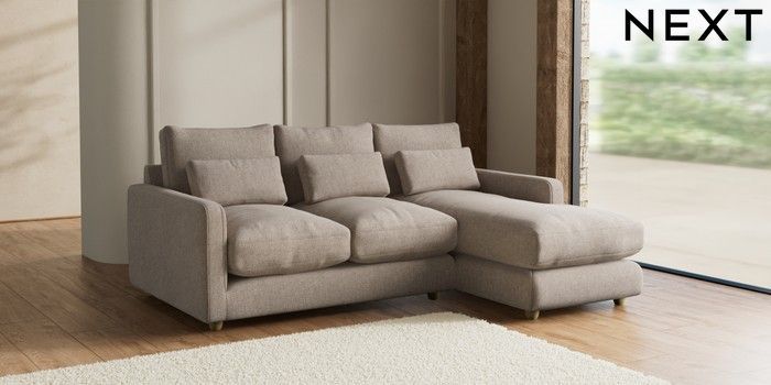 7.2.6 Buy N Premium Farndon Grand Relaxed Sit Medium Sofa Chaise - Right Hand Chunky Chenille Light Dove Wooden Glide - Light from the Next UK online shop Click here to use our accessible website