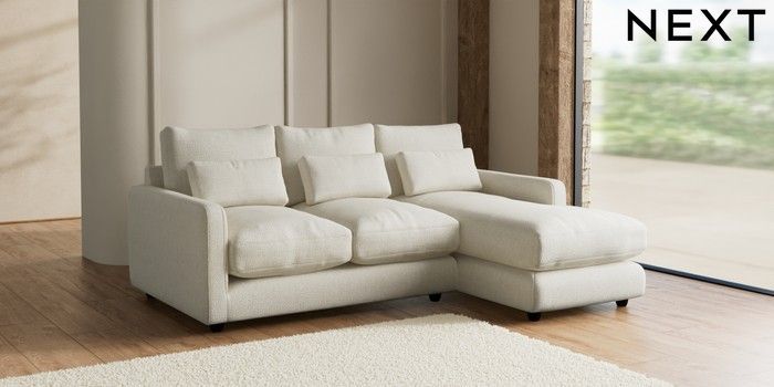 7.2.6 Buy N Premium Farndon Grand Relaxed Sit Medium Sofa Chaise - Right Hand Chunky Texture Oyster Wooden Glide - Dark from the Next UK online shop Click here to use our accessible website